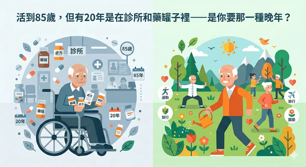 活到85歲,但有20年是在診所和藥罐子裡——是你要那一種晚年?