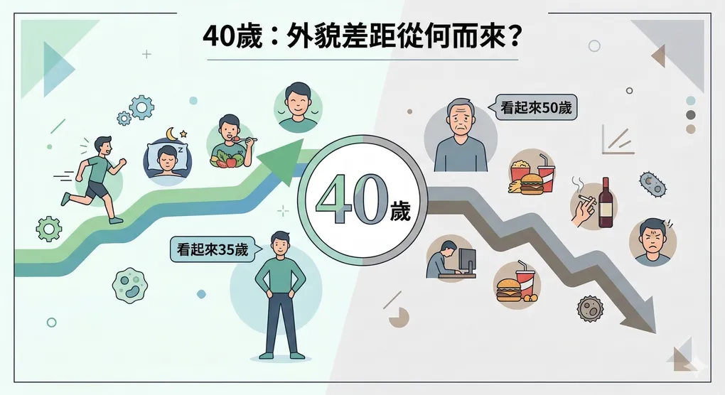 那個差距,就是 40 歲看起來 35 歲和看起來 50 歲之間的距離。